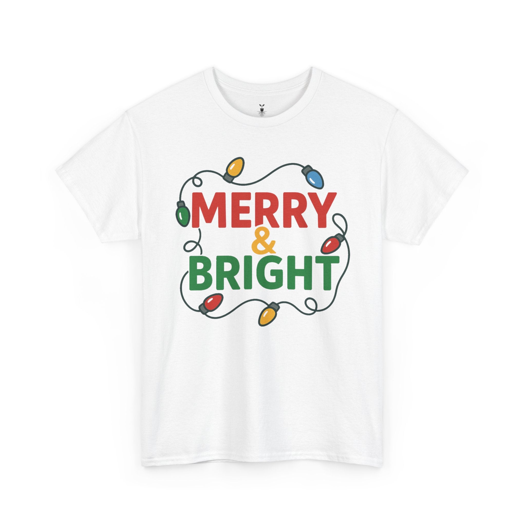 Embrace the festive spirit with this vibrant Unisex Heavy Cotton Tee, perfect for the holiday season and beyond. The cheerful 'Merry & Bright' print adorned with colorful lights instantly uplifts your mood, making it the...